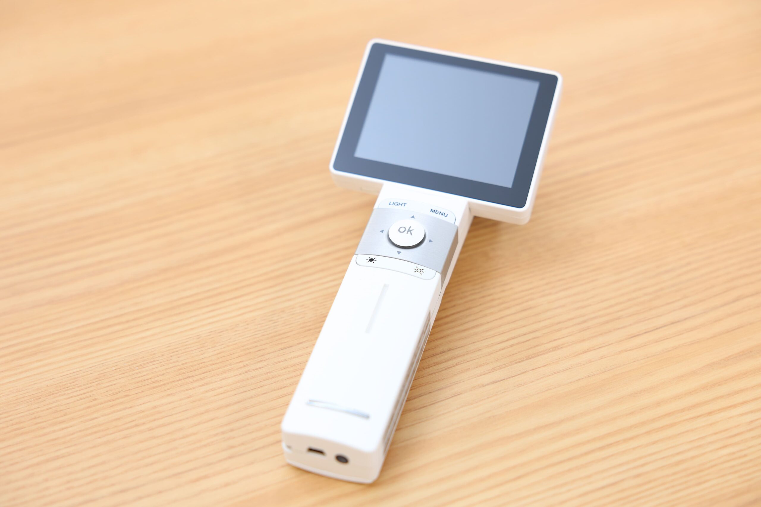 ➁痛みのない蛍光観察装置を用いて、口腔がんなどの粘膜病変を早期に発見し、早期治療へと繋げる。